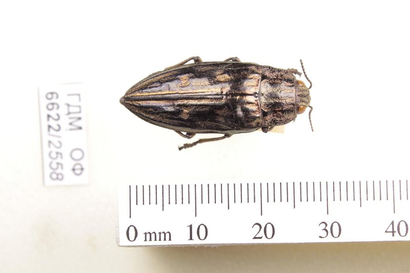 Сухое насекомое. Златка. Chalcophora mariana (Linnaeus, 1758). Классификация: Членистоногие Arthropoda, Насекомые Insecta, Жуки Coleoptera, Златки Buprestidae