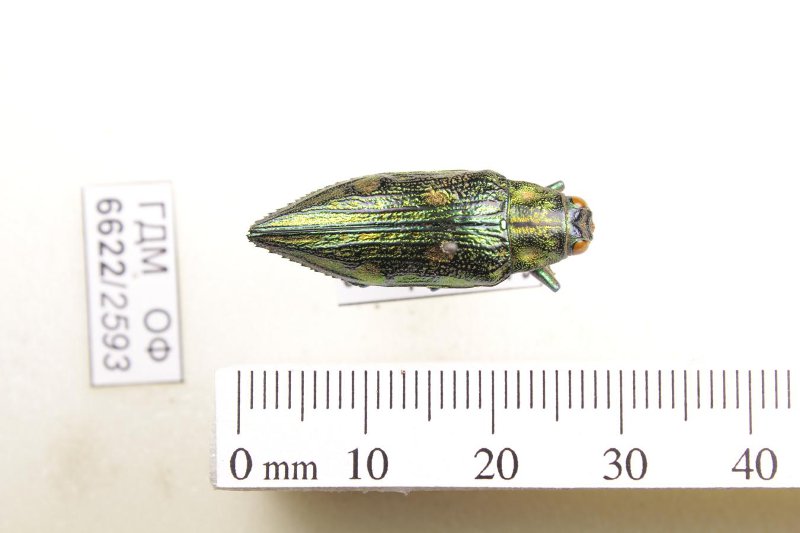 Сухое насекомое. Златка. Chrysodema furcata Kerremans, 1919. Классификация: Членистоногие Arthropoda, Насекомые Insecta, Жуки Coleoptera, Златки Buprestidae