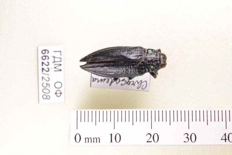 Сухое насекомое. Златка. Chrysodema radians (Guérin-Ménéville, 1830). Классификация: Членистоногие Arthropoda, Насекомые Insecta, Жуки Coleoptera, Златки Buprestidae