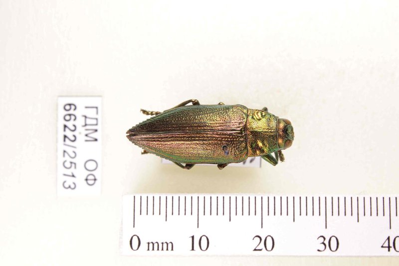 Сухое насекомое. Златка. Chrysodema radians (Guérin-Ménéville, 1830). Классификация: Членистоногие Arthropoda, Насекомые Insecta, Жуки Coleoptera, Златки Buprestidae