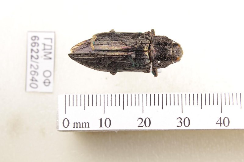 Сухое насекомое. Златка. Texania fulleri (Horn, 1875). Классификация: Членистоногие Arthropoda, Насекомые Insecta, Жуки Coleoptera, Златки Buprestidae