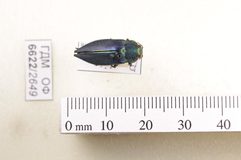 Сухое насекомое. Златка. Perotis chloranus (Laporte et Gory, 1836). Классификация: Членистоногие Arthropoda, Насекомые Insecta, Жуки Coleoptera, Златки Buprestidae