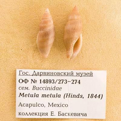 Морской брюхоногий моллюск. Metula metula (Hinds, 1844). Классификация: Моллюски Mollusca, Брюхоногие Gastropoda, Neogastropoda, Buccinidae