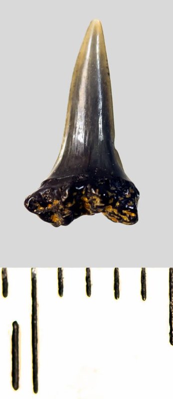 Зуб (фрагмент). Акула. Eostriatolamia subulata (Agassiz, 1843). Классификация: Хордовые Chordata, Позвоночные Vertebrata, Хрящевые рыбы Chondrichthyes, Пластиножаберные Elasmobranchii, Акулы Selachii, Ламнообразные Lamniformes, Песчаные акулы Odontaspididae