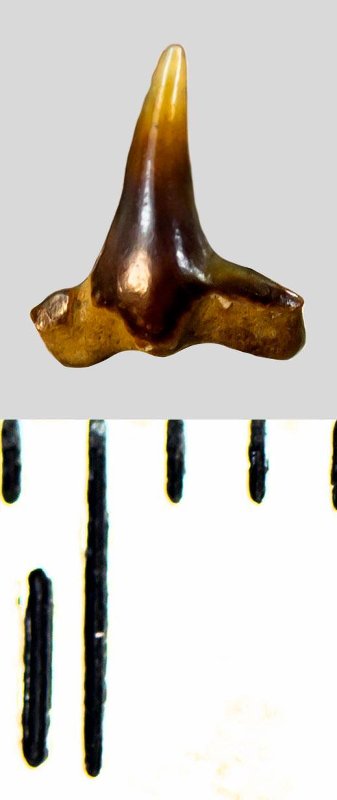 Зуб. Морские ангелы. Squatina cranei (Woodward, 1888). Классификация: Хордовые Chordata, Позвоночные Vertebrata, Хрящевые рыбы Chondrichthyes, Пластиножаберные Elasmobranchii, Акулы Selachii, Скватинообразные Squatiniformes, Морские ангелы Squatinidae