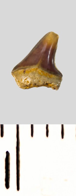 Зуб. Акула. Eostriatolamia subulata (Agassiz, 1843). Классификация: Хордовые Chordata, Позвоночные Vertebrata, Хрящевые рыбы Chondrichthyes, Пластиножаберные Elasmobranchii, Акулы Selachii, Ламнообразные Lamniformes, Песчаные акулы Odontaspididae