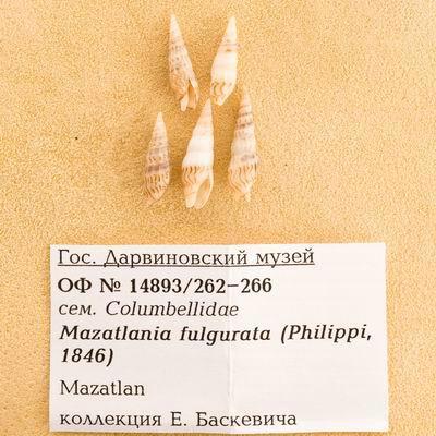 Морской брюхоногий моллюск. Mazatlania fulgurata (Philippi, 1846). Классификация: Моллюски Mollusca, Брюхоногие Gastropoda, Neogastropoda, Columbellidae