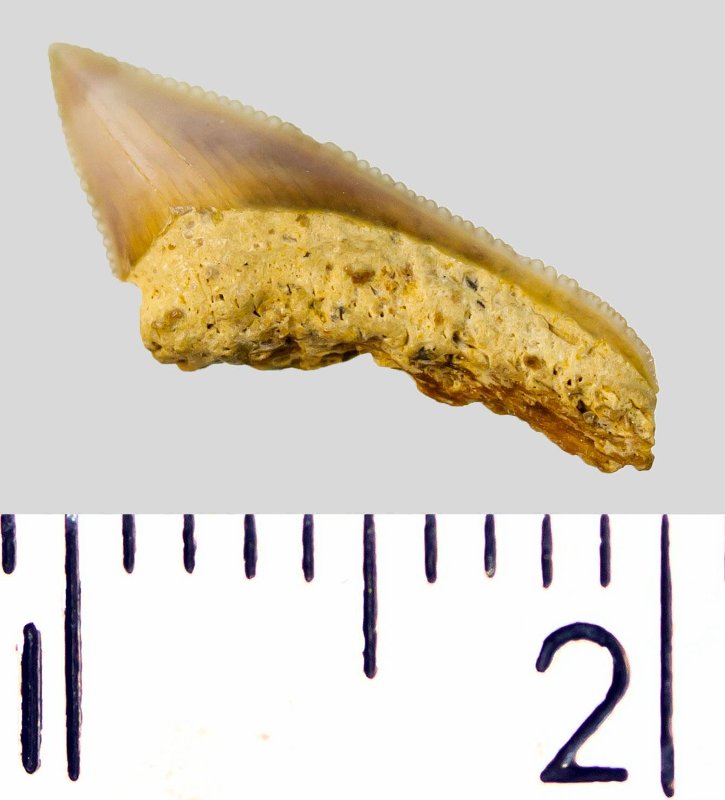 Зуб. Акула. Palaeoanacorax intermedius Glueckman, 1971. Классификация: Хордовые Chordata, Позвоночные Vertebrata, Хрящевые рыбы Chondrichthyes, Пластиножаберные Elasmobranchii, Акулы Selachii, Ламнообразные Lamniformes, Anacoracidae