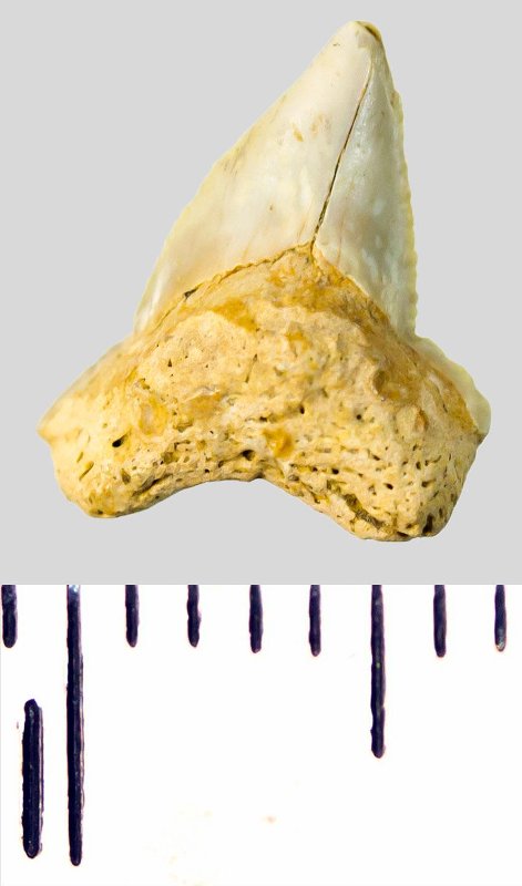 Зуб. Акула. Palaeoanacorax intermedius Glueckman, 1971. Классификация: Хордовые Chordata, Позвоночные Vertebrata, Хрящевые рыбы Chondrichthyes, Пластиножаберные Elasmobranchii, Акулы Selachii, Ламнообразные Lamniformes, Anacoracidae