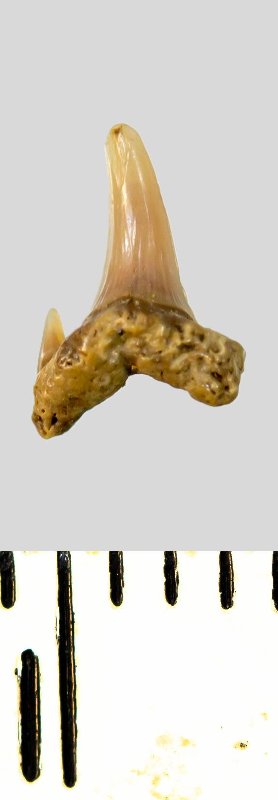 Зуб. Акула. Eostriatolamia subulata (Agassiz, 1843). Классификация: Хордовые Chordata, Позвоночные Vertebrata, Хрящевые рыбы Chondrichthyes, Пластиножаберные Elasmobranchii, Акулы Selachii, Ламнообразные Lamniformes, Песчаные акулы Odontaspididae