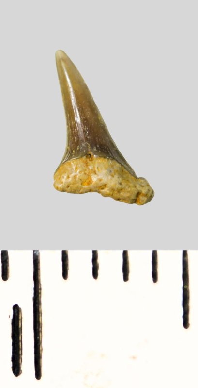 Зуб. Акула. Eostriatolamia subulata (Agassiz, 1843). Классификация: Хордовые Chordata, Позвоночные Vertebrata, Хрящевые рыбы Chondrichthyes, Пластиножаберные Elasmobranchii, Акулы Selachii, Ламнообразные Lamniformes, Песчаные акулы Odontaspididae