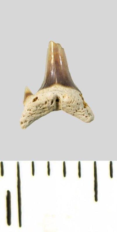 Зуб. Акула. Eostriatolamia subulata (Agassiz, 1843). Классификация: Хордовые Chordata, Позвоночные Vertebrata, Хрящевые рыбы Chondrichthyes, Пластиножаберные Elasmobranchii, Акулы Selachii, Ламнообразные Lamniformes, Песчаные акулы Odontaspididae