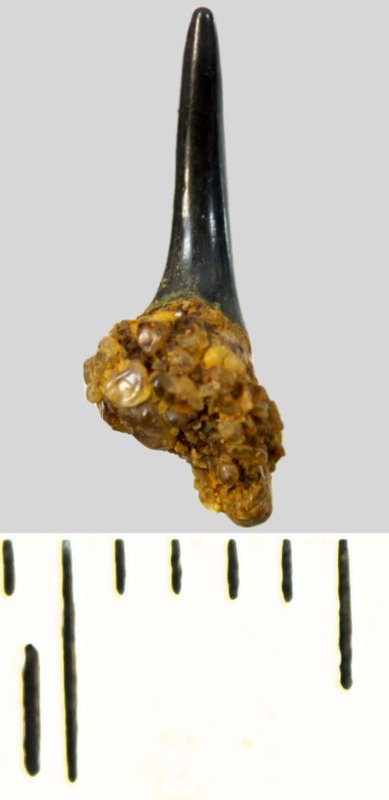 Зуб. Акула. Eostriatolamia subulata (Agassiz, 1843). Классификация: Хордовые Chordata, Позвоночные Vertebrata, Хрящевые рыбы Chondrichthyes, Пластиножаберные Elasmobranchii, Акулы Selachii, Ламнообразные Lamniformes, Песчаные акулы Odontaspididae