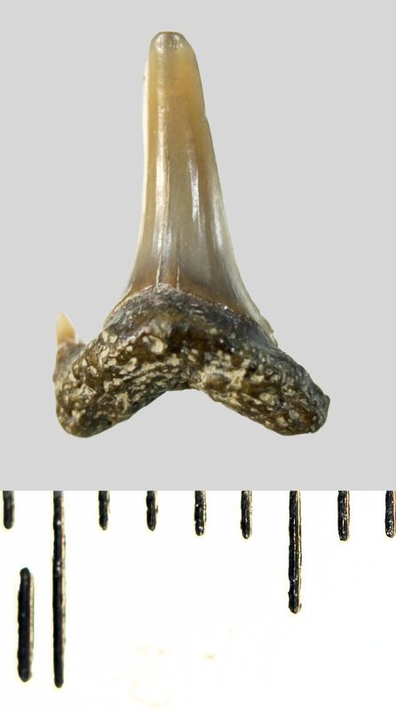 Зуб. Акула. Eostriatolamia subulata (Agassiz, 1843). Классификация: Хордовые Chordata, Позвоночные Vertebrata, Хрящевые рыбы Chondrichthyes, Пластиножаберные Elasmobranchii, Акулы Selachii, Ламнообразные Lamniformes
