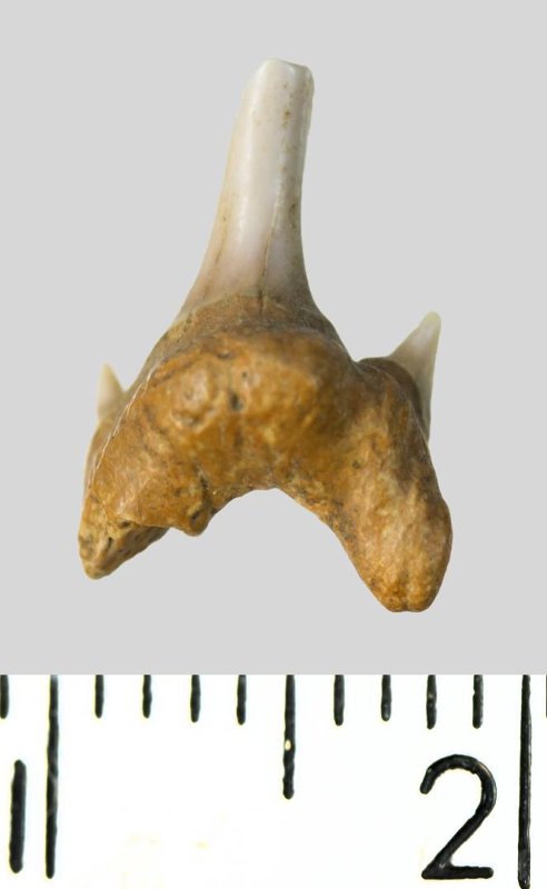 Зуб. Акула. Protolamna sp.? Классификация: Хордовые Chordata, Позвоночные Vertebrata, Хрящевые рыбы Chondrichthyes, Пластиножаберные Elasmobranchii, Акулы Selachii, Ламнообразные Lamniformes