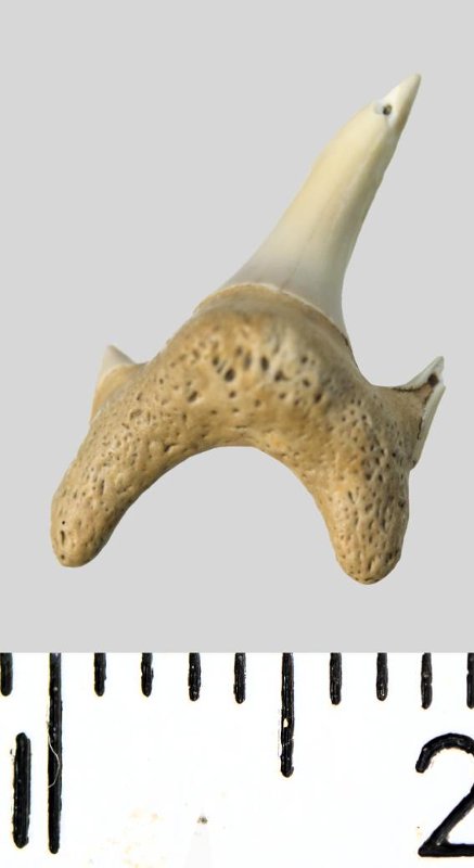 Зуб. Акула. Protolamna sp.? Классификация: Хордовые Chordata, Позвоночные Vertebrata, Хрящевые рыбы Chondrichthyes, Пластиножаберные Elasmobranchii, Акулы Selachii, Ламнообразные Lamniformes