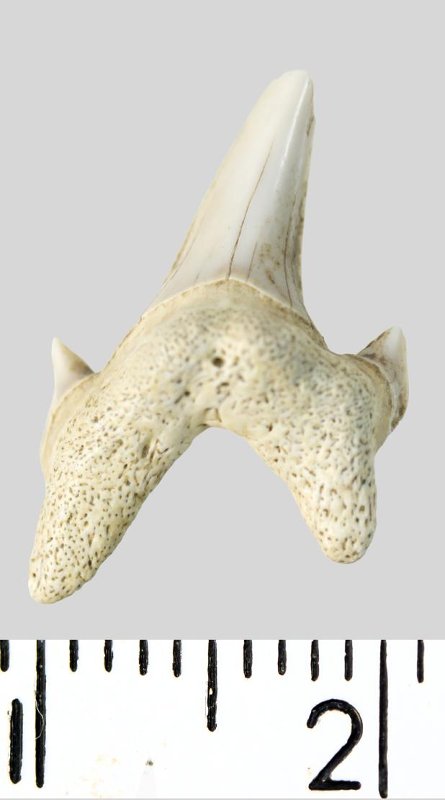 Зуб. Акула. Protolamna sp.? Классификация: Хордовые Chordata, Позвоночные Vertebrata, Хрящевые рыбы Chondrichthyes, Пластиножаберные Elasmobranchii, Акулы Selachii, Ламнообразные Lamniformes