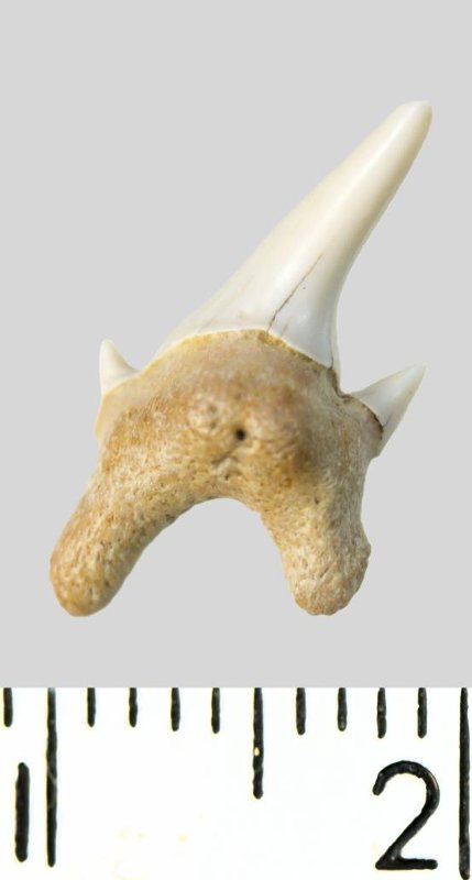Зуб. Акула. Protolamna sp.? Классификация: Хордовые Chordata, Позвоночные Vertebrata, Хрящевые рыбы Chondrichthyes, Пластиножаберные Elasmobranchii, Акулы Selachii, Ламнообразные Lamniformes