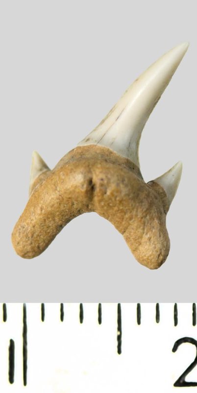 Зуб. Акула. Protolamna sp.? Классификация: Хордовые Chordata, Позвоночные Vertebrata, Хрящевые рыбы Chondrichthyes, Пластиножаберные Elasmobranchii, Акулы Selachii, Ламнообразные Lamniformes