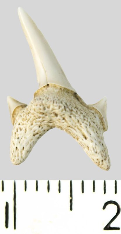 Зуб. Акула. Protolamna sp.? Классификация: Хордовые Chordata, Позвоночные Vertebrata, Хрящевые рыбы Chondrichthyes, Пластиножаберные Elasmobranchii, Акулы Selachii, Ламнообразные Lamniformes
