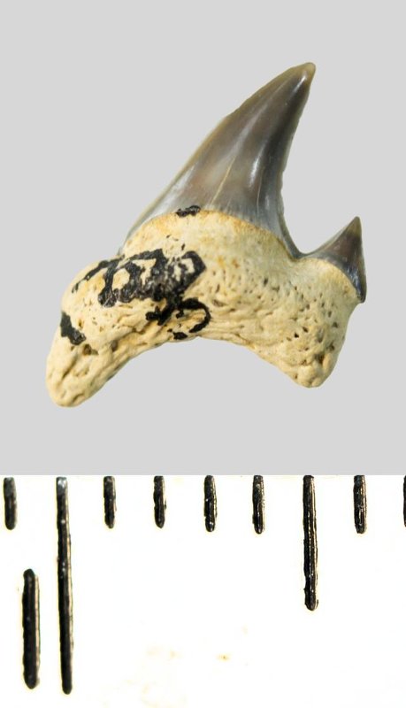 Зуб. Акула. Archaeolamna cf. kopingensis (Davis, 1890). Классификация: Хордовые Chordata, Позвоночные Vertebrata, Хрящевые рыбы Chondrichthyes, Пластиножаберные Elasmobranchii, Акулы Selachii, Ламнообразные Lamniformes