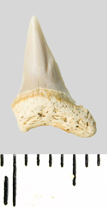 Зуб. Акула. Archaeolamna cf. kopingensis (Davis, 1890). Классификация: Хордовые Chordata, Позвоночные Vertebrata, Хрящевые рыбы Chondrichthyes, Пластиножаберные Elasmobranchii, Акулы Selachii, Ламнообразные Lamniformes