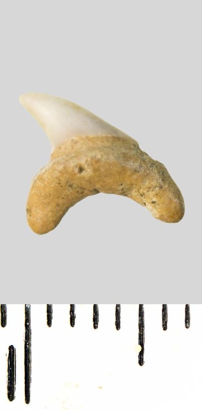 Зуб. Акула. Archaeolamna cf. kopingensis (Davis, 1890). Классификация: Хордовые Chordata, Позвоночные Vertebrata, Хрящевые рыбы Chondrichthyes, Пластиножаберные Elasmobranchii, Акулы Selachii, Ламнообразные Lamniformes