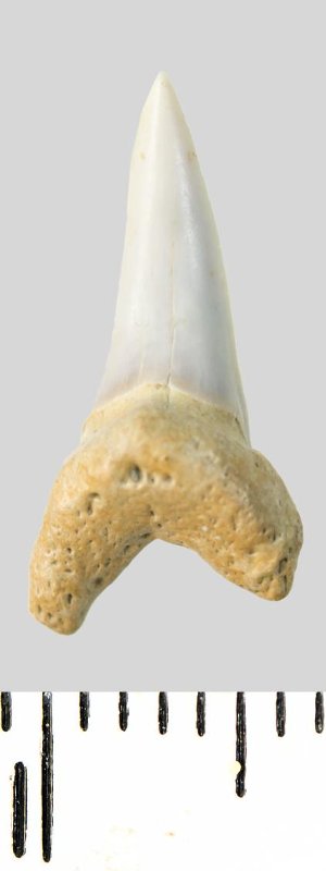 Зуб. Акула. Archaeolamna cf. kopingensis (Davis, 1890). Классификация: Хордовые Chordata, Позвоночные Vertebrata, Хрящевые рыбы Chondrichthyes, Пластиножаберные Elasmobranchii, Акулы Selachii, Ламнообразные Lamniformes