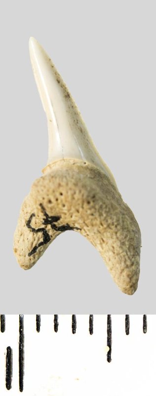 Зуб. Акула. Archaeolamna cf. kopingensis (Davis, 1890). Классификация: Хордовые Chordata, Позвоночные Vertebrata, Хрящевые рыбы Chondrichthyes, Пластиножаберные Elasmobranchii, Акулы Selachii, Ламнообразные Lamniformes