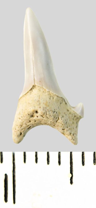 Зуб. Акула. Archaeolamna cf. kopingensis (Davis, 1890). Классификация: Хордовые Chordata, Позвоночные Vertebrata, Хрящевые рыбы Chondrichthyes, Пластиножаберные Elasmobranchii, Акулы Selachii, Ламнообразные Lamniformes