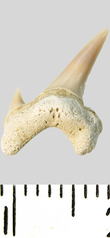 Зуб. Акула. Archaeolamna cf. kopingensis (Davis, 1890). Классификация: Хордовые Chordata, Позвоночные Vertebrata, Хрящевые рыбы Chondrichthyes, Пластиножаберные Elasmobranchii, Акулы Selachii, Ламнообразные Lamniformes