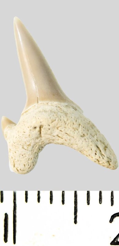 Зуб. Акула. Archaeolamna cf. kopingensis (Davis, 1890). Классификация: Хордовые Chordata, Позвоночные Vertebrata, Хрящевые рыбы Chondrichthyes, Пластиножаберные Elasmobranchii, Акулы Selachii, Ламнообразные Lamniformes