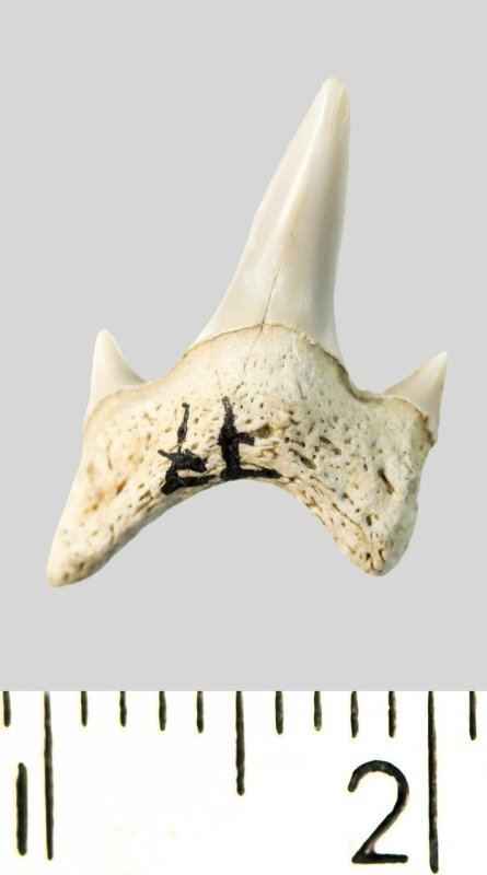 Зуб. Акула. Archaeolamna cf. kopingensis (Davis, 1890). Классификация: Хордовые Chordata, Позвоночные Vertebrata, Хрящевые рыбы Chondrichthyes, Пластиножаберные Elasmobranchii, Акулы Selachii, Ламнообразные Lamniformes