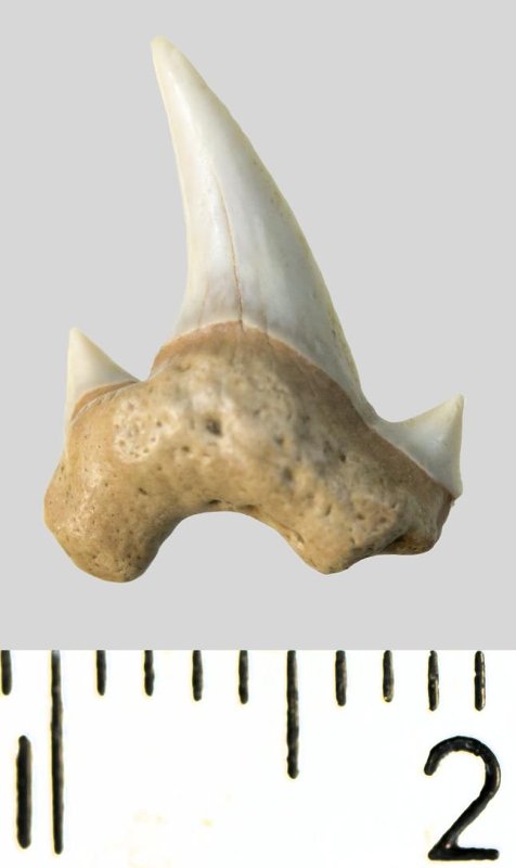 Зуб. Акула. Archaeolamna cf. kopingensis (Davis, 1890). Классификация: Хордовые Chordata, Позвоночные Vertebrata, Хрящевые рыбы Chondrichthyes, Пластиножаберные Elasmobranchii, Акулы Selachii, Ламнообразные Lamniformes