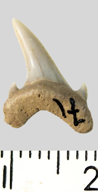 Зуб. Акула. Archaeolamna cf. kopingensis (Davis, 1890). Классификация: Хордовые Chordata, Позвоночные Vertebrata, Хрящевые рыбы Chondrichthyes, Пластиножаберные Elasmobranchii, Акулы Selachii, Ламнообразные Lamniformes