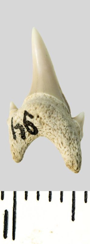Зуб. Акула. Archaeolamna cf. kopingensis (Davis, 1890). Классификация: Хордовые Chordata, Позвоночные Vertebrata, Хрящевые рыбы Chondrichthyes, Пластиножаберные Elasmobranchii, Акулы Selachii, Ламнообразные Lamniformes