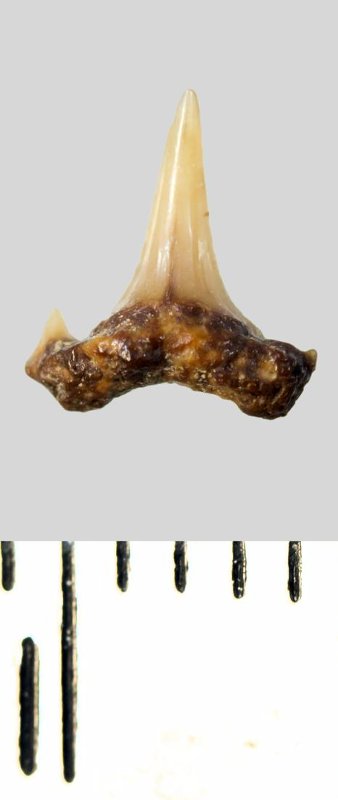 Зуб. Акула. Eostriatolamia subulata (Agassiz, 1843). Классификация: Хордовые Chordata, Позвоночные Vertebrata, Хрящевые рыбы Chondrichthyes, Пластиножаберные Elasmobranchii, Акулы Selachii, Ламнообразные Lamniformes