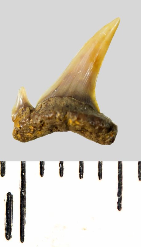 Зуб. Акула. Eostriatolamia subulata (Agassiz, 1843). Классификация: Хордовые Chordata, Позвоночные Vertebrata, Хрящевые рыбы Chondrichthyes, Пластиножаберные Elasmobranchii, Акулы Selachii, Ламнообразные Lamniformes