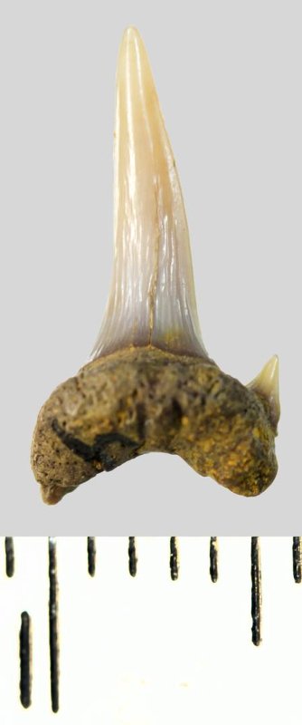 Зуб. Акула. Eostriatolamia subulata (Agassiz, 1843). Классификация: Хордовые Chordata, Позвоночные Vertebrata, Хрящевые рыбы Chondrichthyes, Пластиножаберные Elasmobranchii, Акулы Selachii, Ламнообразные Lamniformes