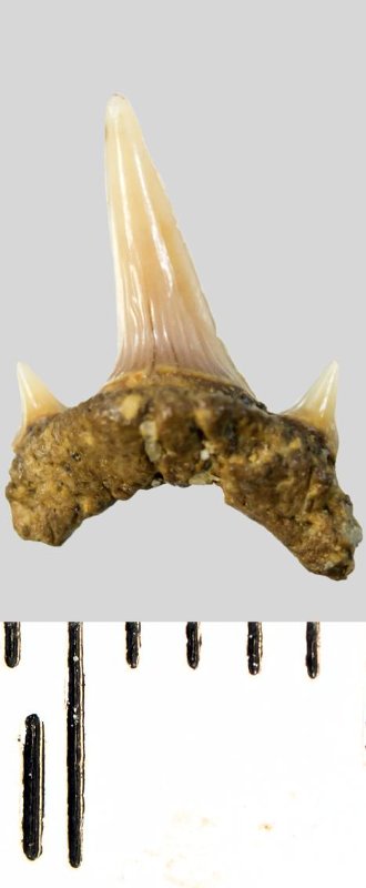 Зуб. Акула. Eostriatolamia subulata (Agassiz, 1843). Классификация: Хордовые Chordata, Позвоночные Vertebrata, Хрящевые рыбы Chondrichthyes, Пластиножаберные Elasmobranchii, Акулы Selachii, Ламнообразные Lamniformes