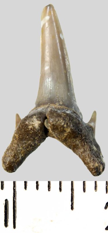 Зуб. Акула. Eostriatolamia subulata (Agassiz, 1843). Классификация: Хордовые Chordata, Позвоночные Vertebrata, Хрящевые рыбы Chondrichthyes, Пластиножаберные Elasmobranchii, Акулы Selachii, Ламнообразные Lamniformes