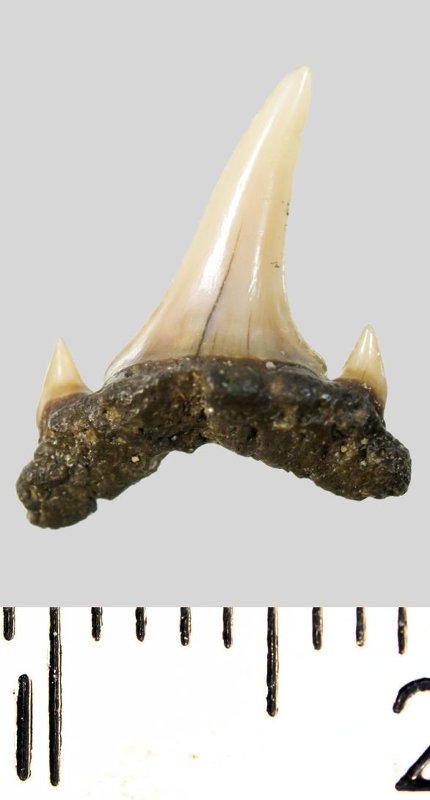Зуб. Акула. Eostriatolamia subulata (Agassiz, 1843). Классификация: Хордовые Chordata, Позвоночные Vertebrata, Хрящевые рыбы Chondrichthyes, Пластиножаберные Elasmobranchii, Акулы Selachii, Ламнообразные Lamniformes