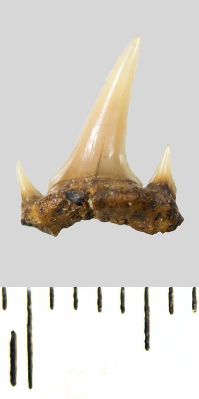 Зуб. Акула. Eostriatolamia subulata (Agassiz, 1843). Классификация: Хордовые Chordata, Позвоночные Vertebrata, Хрящевые рыбы Chondrichthyes, Пластиножаберные Elasmobranchii, Акулы Selachii, Ламнообразные Lamniformes