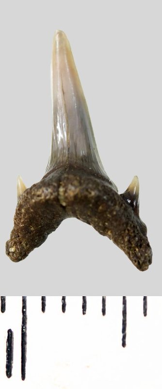 Зуб. Акула. Eostriatolamia subulata (Agassiz, 1843). Классификация: Хордовые Chordata, Позвоночные Vertebrata, Хрящевые рыбы Chondrichthyes, Пластиножаберные Elasmobranchii, Акулы Selachii, Ламнообразные Lamniformes