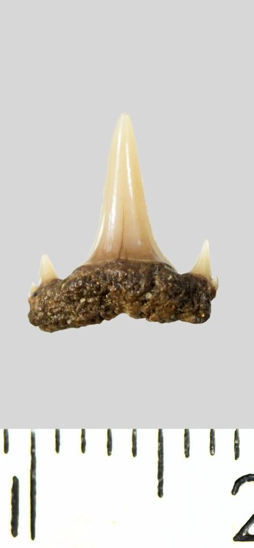 Зуб. Акула. Eostriatolamia subulata (Agassiz, 1843). Классификация: Хордовые Chordata, Позвоночные Vertebrata, Хрящевые рыбы Chondrichthyes, Пластиножаберные Elasmobranchii, Акулы Selachii, Ламнообразные Lamniformes