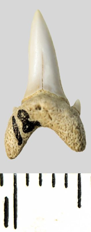 Зуб. Акула. Archaeolamna cf. kopingensis (Davis, 1890). Классификация: Хордовые Chordata, Позвоночные Vertebrata, Хрящевые рыбы Chondrichthyes, Пластиножаберные Elasmobranchii, Акулы Selachii, Ламнообразные Lamniformes