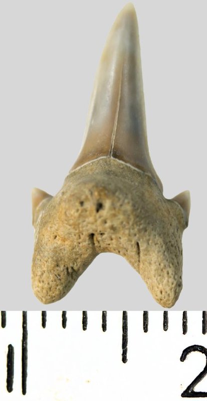 Зуб. Акула. Archaeolamna cf. kopingensis (Davis, 1890). Классификация: Хордовые Chordata, Позвоночные Vertebrata, Хрящевые рыбы Chondrichthyes, Пластиножаберные Elasmobranchii, Акулы Selachii, Ламнообразные Lamniformes