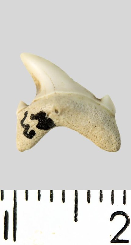 Зуб. Акула. Archaeolamna cf. kopingensis (Davis, 1890). Классификация: Хордовые Chordata, Позвоночные Vertebrata, Хрящевые рыбы Chondrichthyes, Пластиножаберные Elasmobranchii, Акулы Selachii, Ламнообразные Lamniformes