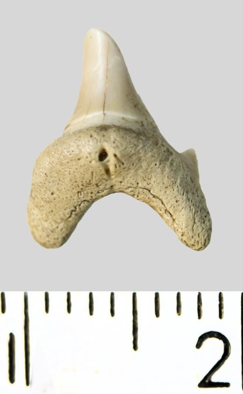 Зуб. Акула. Archaeolamna cf. kopingensis (Davis, 1890). Классификация: Хордовые Chordata, Позвоночные Vertebrata, Хрящевые рыбы Chondrichthyes, Пластиножаберные Elasmobranchii, Акулы Selachii, Ламнообразные Lamniformes