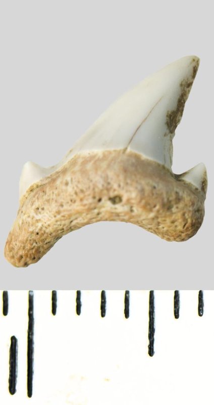 Зуб. Акула. Archaeolamna cf. kopingensis (Davis, 1890). Классификация: Хордовые Chordata, Позвоночные Vertebrata, Хрящевые рыбы Chondrichthyes, Пластиножаберные Elasmobranchii, Акулы Selachii, Ламнообразные Lamniformes